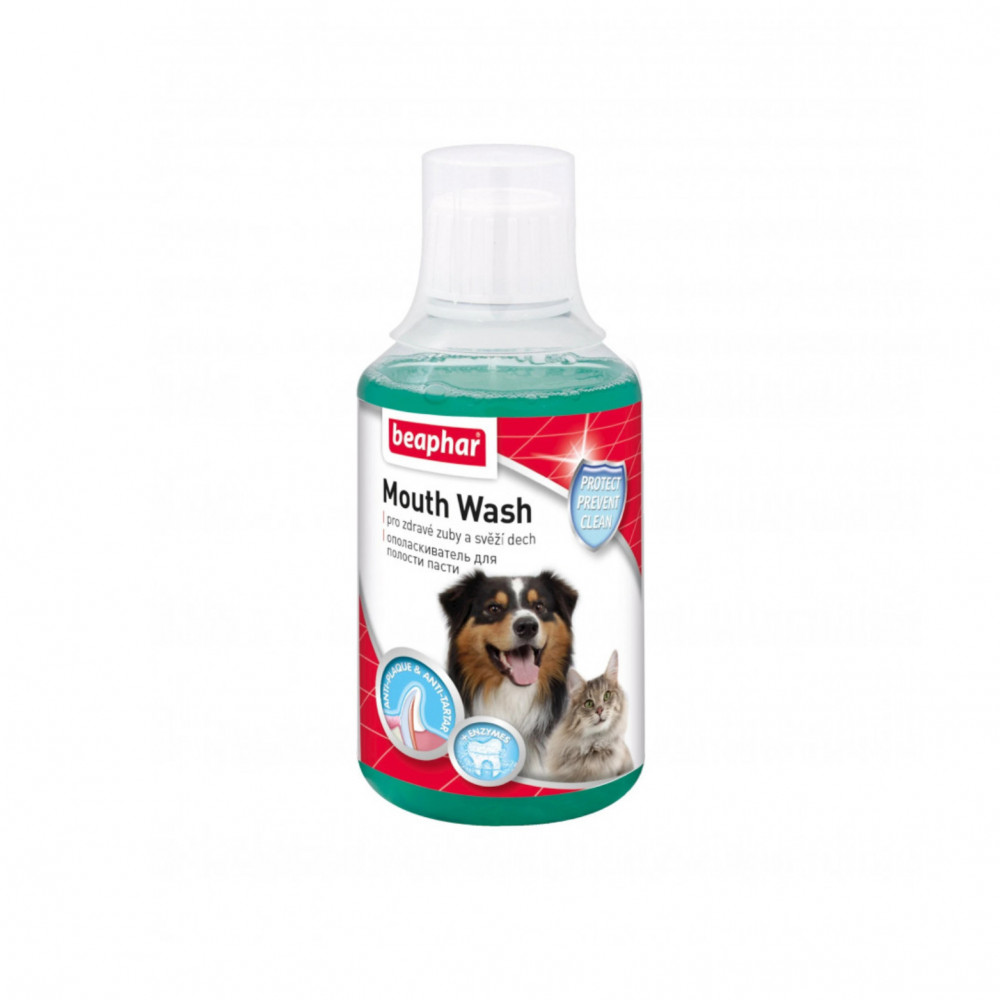 إضافة غسول الفم إلى مياه شرب الكلب او القطه لمواجهة رائحة الفم الكريهة. تتسبب البكتيريا وجزيئات الطعام في تكوين طبقة البلاك على الأسنان ، مما يتسبب في تسوس الأسنان واللثة ، ويؤدي إلى رائحة الفم الكريهة. يحتوي غسول الفم بيفار على إنزيمات تقاوم البكتيريا السيئة وتقلل من تكوين البلاك.